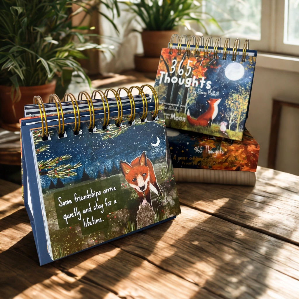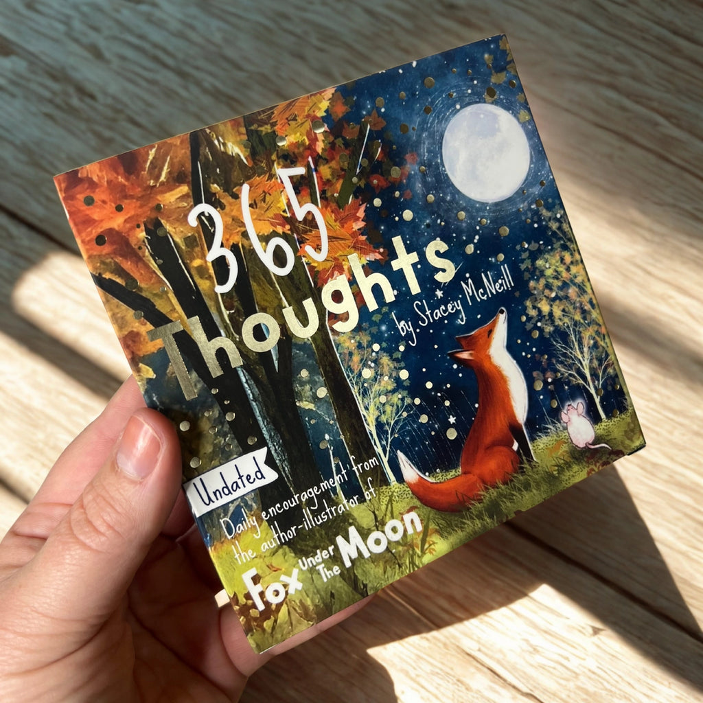 From Stacey McNeill, the author-illustrator behind Fox Under The Moon, comes this free-standing desktop display book filled with daily words of comfort, encouragement, and hope. Each page features Stacey’s signature whimsical illustrations and heartfelt messages taken from Fox Under The Moon: Seasons of Comfort & Hope.