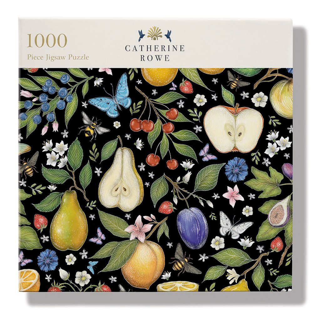 This 1000 piece jigsaw puzzle features the design 'Butterfly and Bee Garden' by artist Catherine Rowe.