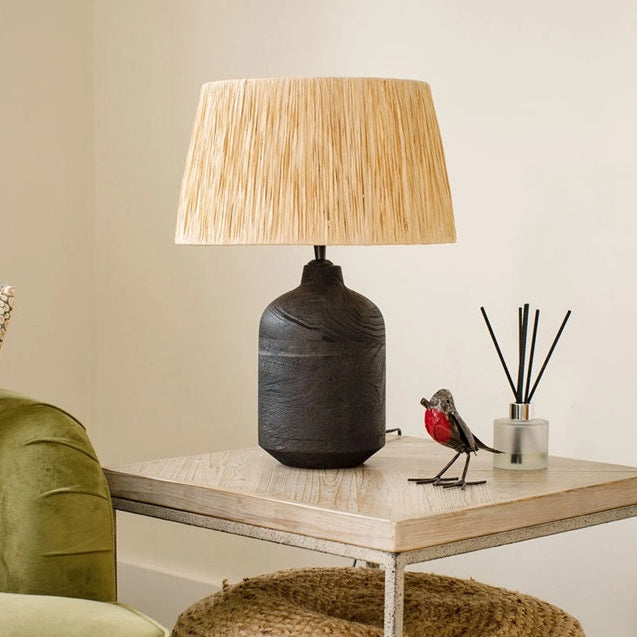 Easton Black Wooden Medium Table Lamp with Raffia Shade