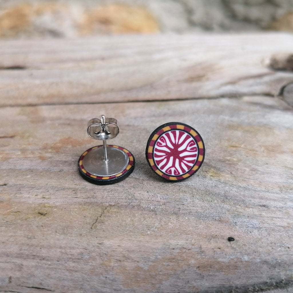 Large Burgundy Celtic Style Fimo Stud Earrings