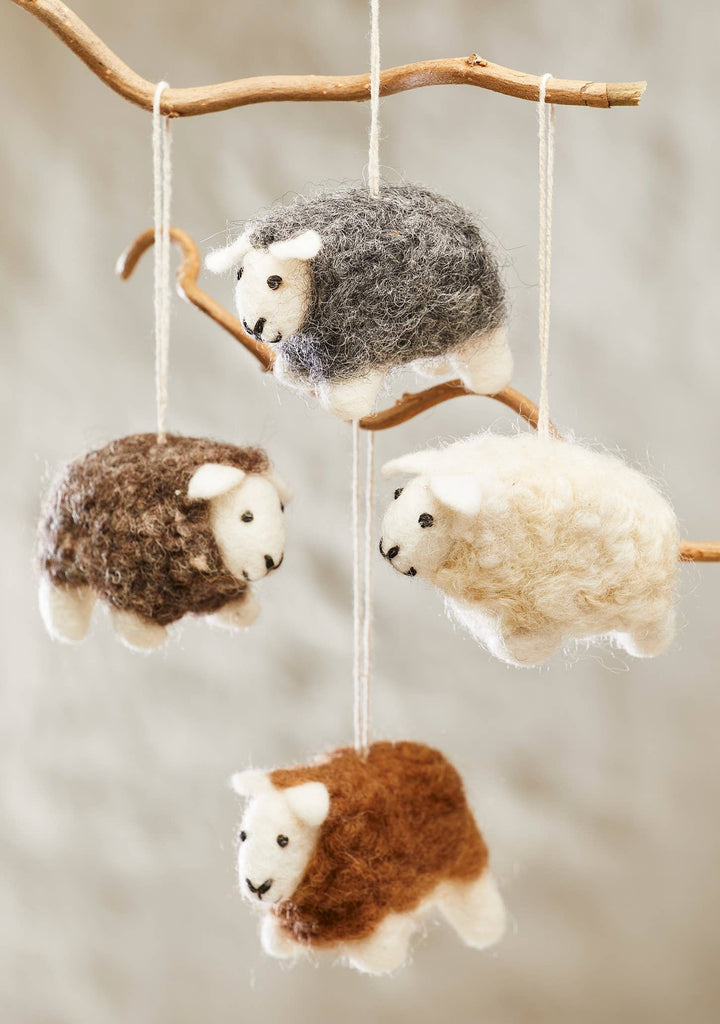 Bring a touch of countryside charm into your home with this Handmade Woolly Felt Sheep Decoration. Standing sweetly on its little legs, each sheep is crafted from eco-friendly wool felt with a soft natural coat in assorted colours.