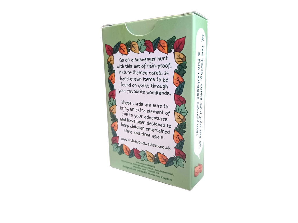 Bring your woodland walks to life with these rain-proof Nature Scavenger Hunt Cards — a fun, screen-free way to spark curiosity and encourage little explorers to connect with the outdoors. Designed for children aged 4–10, each pack includes 34 charming, hand-drawn nature-themed illustrations plus a bonus game-ideas card to help you make the most of every adventure.